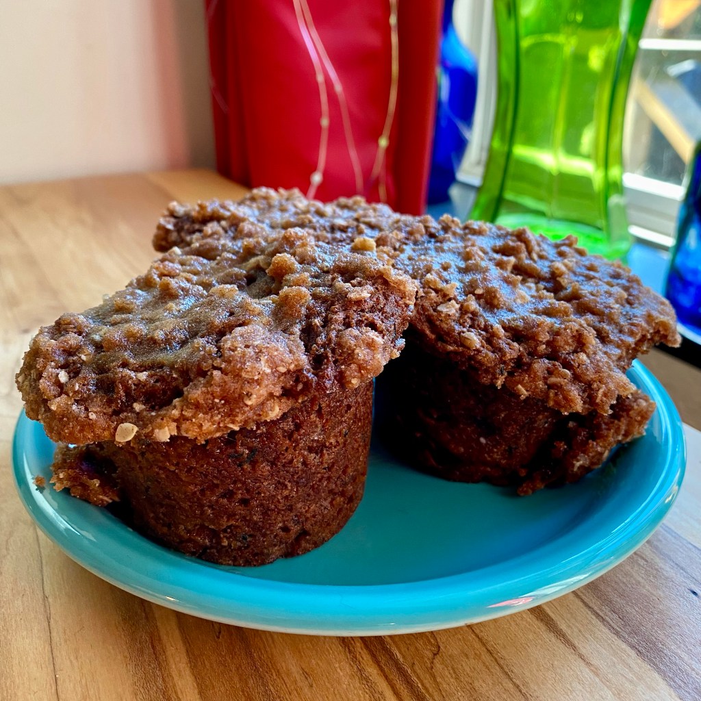 - Divide batter evenly into muffin tins or the cake pan, then top with crumb topping.