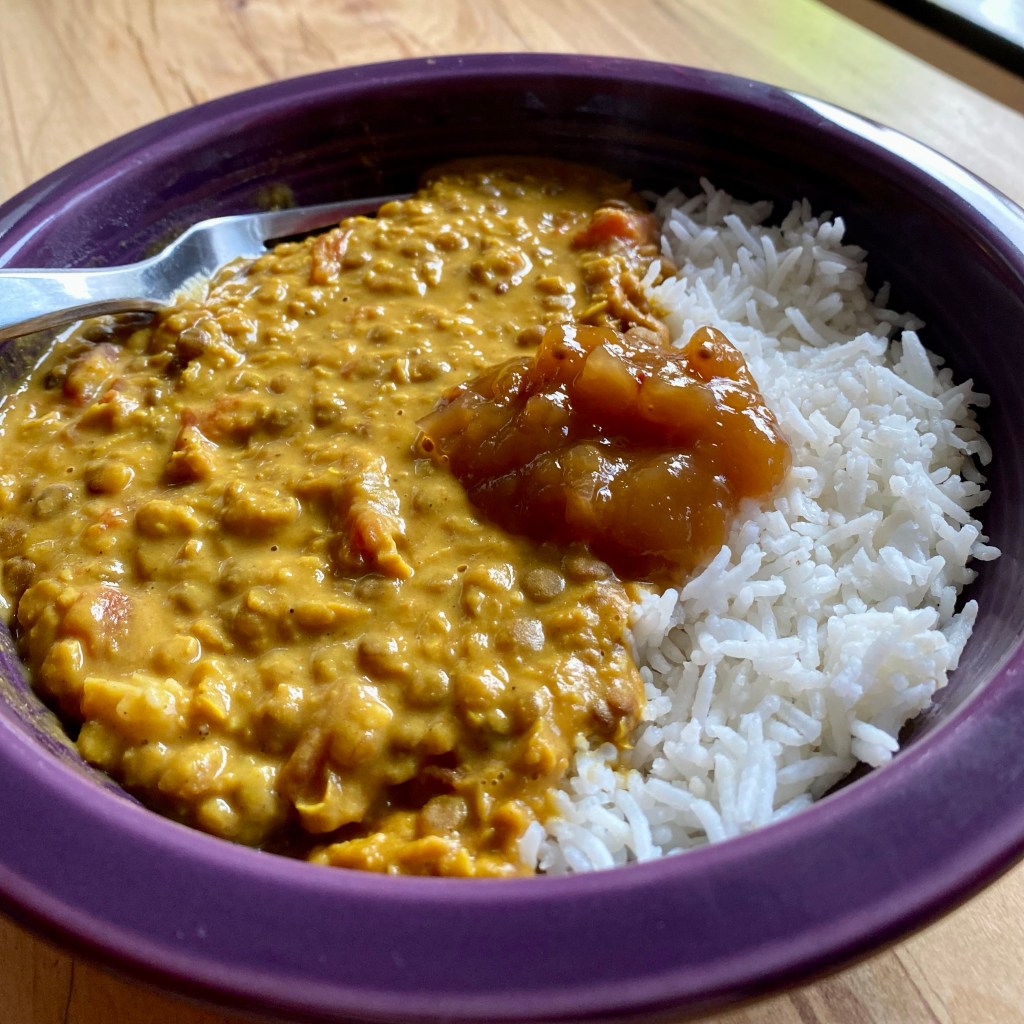 - Blend the coconut milk & almond butter in a nutribullet till smooth, then stir into lentil curry mixture. Bring back up to a boil, then simmer on low heat, uncovered, for 5-10 minutes, until the curry has thickened, lentils are cooked through and are creamy.