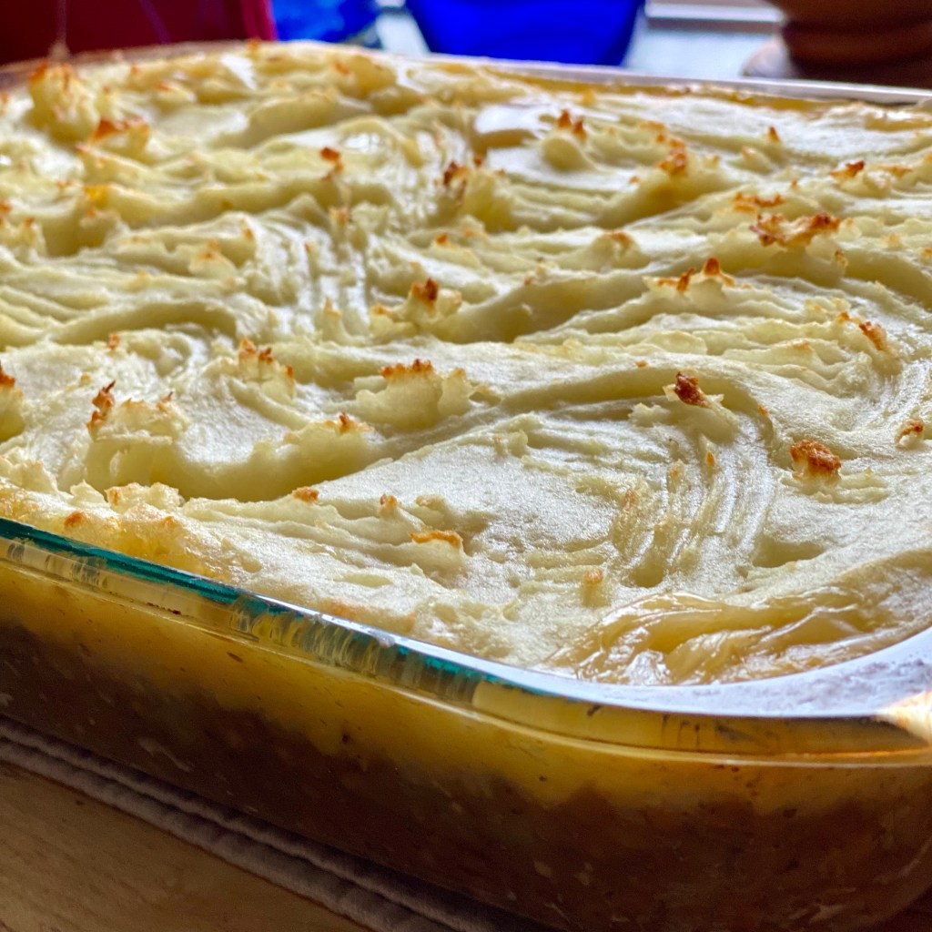 - To help your casserole brown on top, create a light line design with a fork on the mashed potatoes, then dollop with vegan butter or drizzle olive oil and place casserole dishes on cookie sheets (in case of it bubbling over edges).