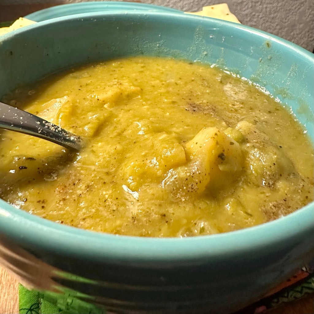 - Add all ingredients to a crockpot and cook on high heat for 4-5 hours, till soup has thickened, potatoes are tender, and split peas are mushy.