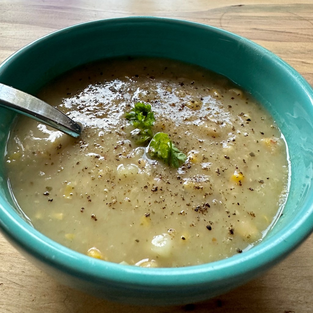 If your husband is like mine, he sometimes gets the wrong thing on the grocery list. I had cream style corn on the list once, and he came back with canned niblet corn, so I turned his mistake into a delicious chowder!