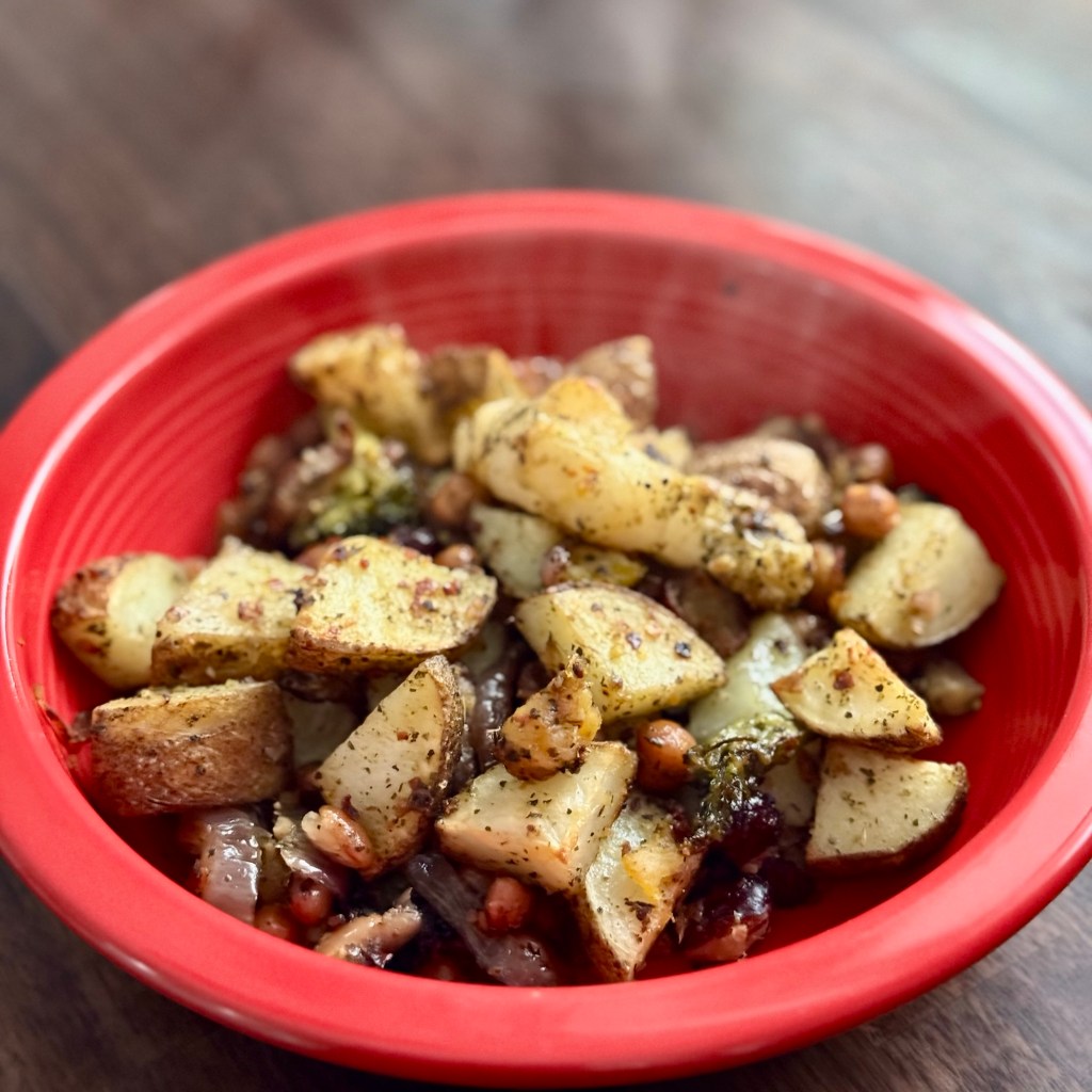 - 2 medium potatoes with skin on, washed and cubed bite size