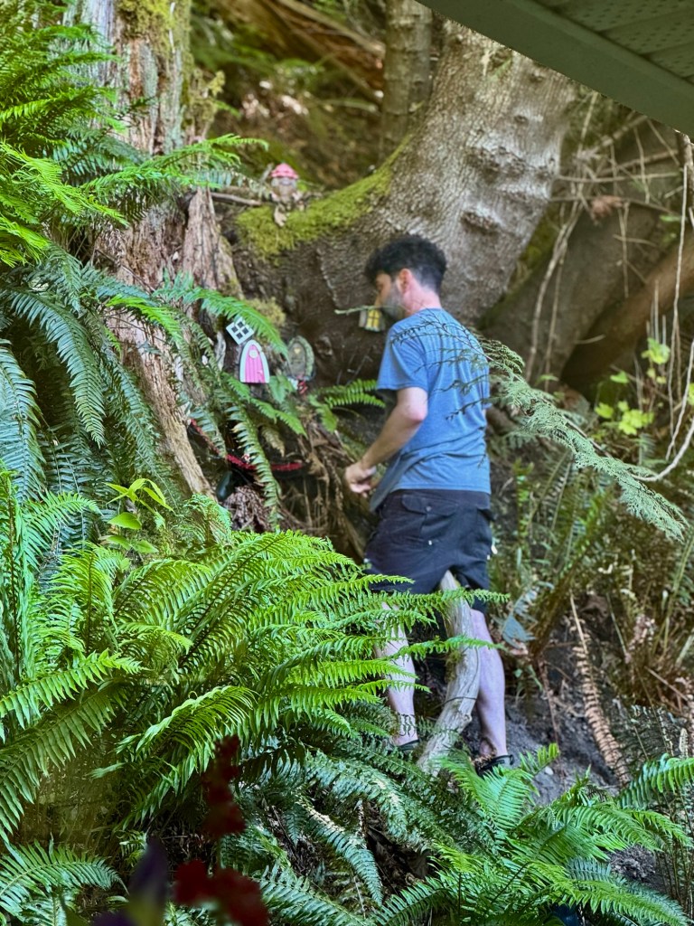 Today a new neighbour moved into the Fairy Slope community, with the help of Mr. B., (aka “Fairy house builder” and “Fairy moving company”).